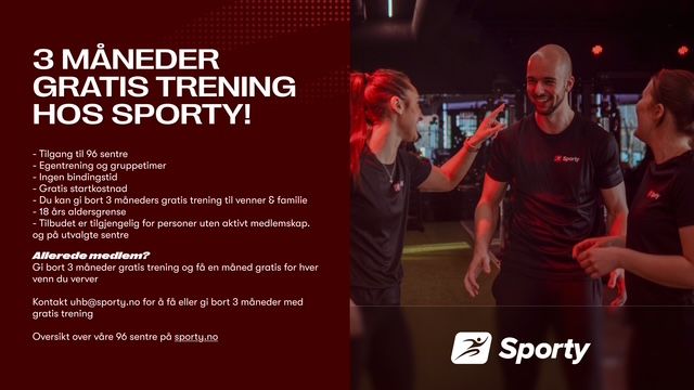 Kontakt uhb@sporty.no for å aktivere tilbudet eller gi bort gratis trening!